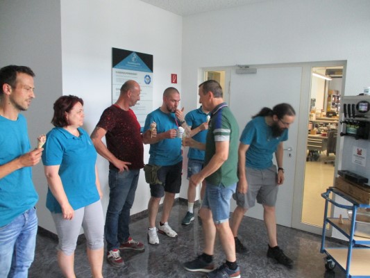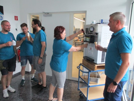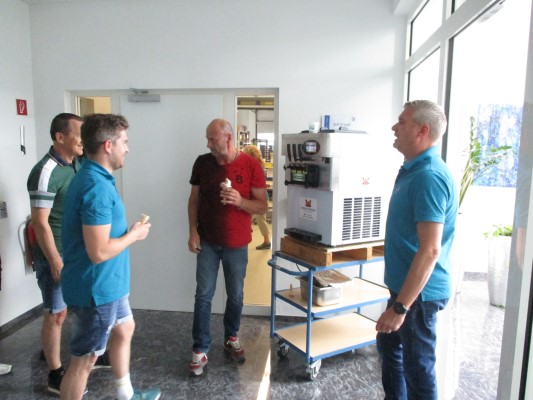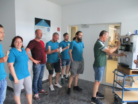 Für die heißen Tage spendierte die Geschäftsleitung den Mitarbeitern für eine Woche eine Softeis Maschine.