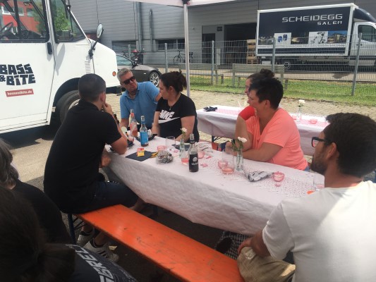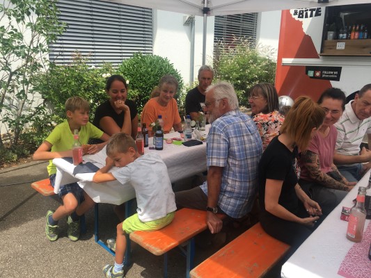 Mit Burgern und kalten Getränken der Firma Bass & Bite konnte bei gemütlicher Atmosphäre über das erste Halbjahr philosophiert werden.